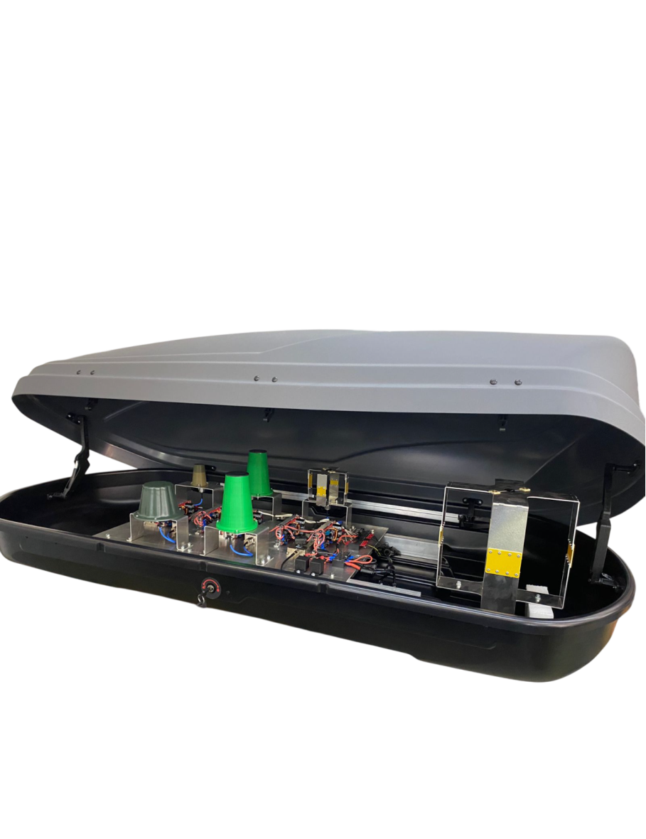 Засіб РЕБ «Saqribs» 6 (автобокс) призначений для придушення каналів керування FPV- та «камікадзе»-дронів. Оснащений квадрофілярними всеспрямованими та спіральними антенами, забезпечує ефективний захист у радіусі від 50 до 300 метрів.